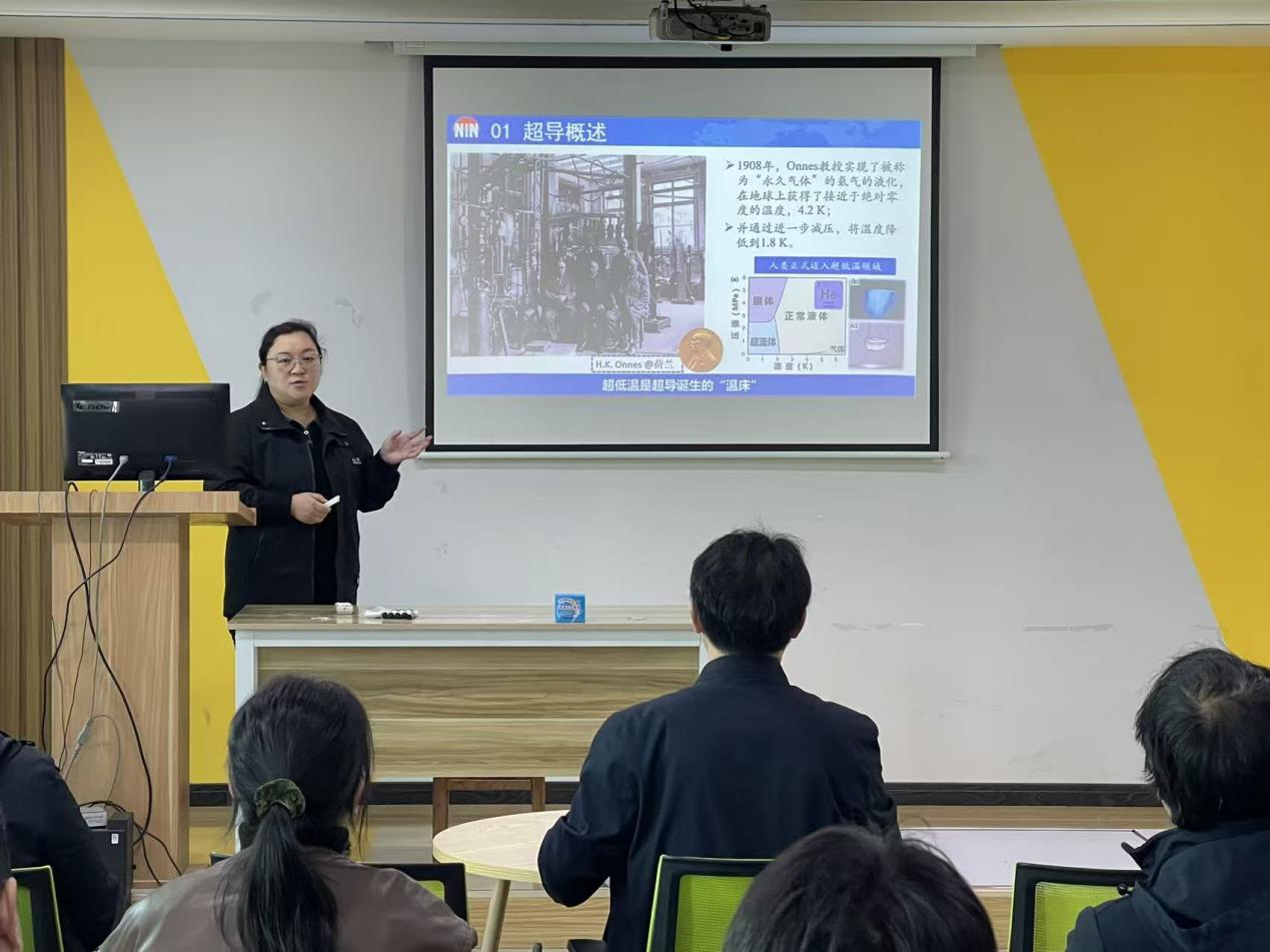 张胜楠从超导的基本性质出发,以6个与超导相关的诺贝尔物理学奖为线索,系统回顾了超导研究领域的重大发展历程。随后,介绍了超导所在多种实用化超导多芯线材制备技术方面的研究进展,详细讲解了NbTi、Nb3Sn、Bi-2212等超导线材的性能特点以及在高能粒子加速器、磁共振成像(MRI)、人工可控核聚变等领域的应用现状和发展趋势。报告结束后,张胜楠与现场师生进行了深入的学术交流,对师生提出的问题进行了认真解答。