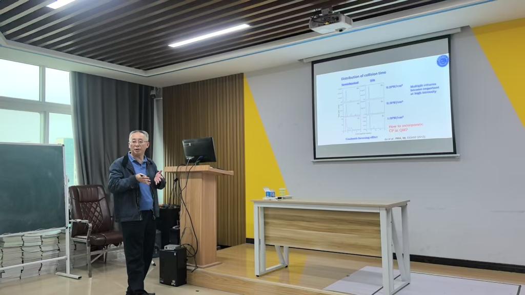 10月29日下午,应学院邀请,中国科学技术大学陈京教授来朱古力av 讲学,在理科楼北楼507作了题为“强激光场下原子非次序双电离过程中的量子效应”的学术报告。报告会由副院长刘墨林主持,部分教师、研究生及本科生聆听了报告。